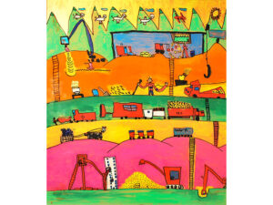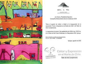 Muestra del Taller Arte Complementa que constó de 60 grabados y 50 acuarelas realizadas especialmente para la Compañía Minera Doña Inés de Collahuasi, donde el tema principal fue el norte y los yacimientos mineros.