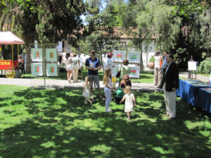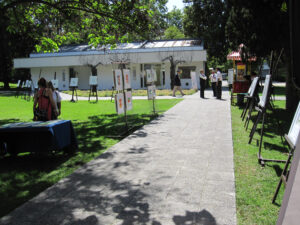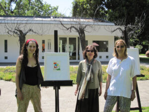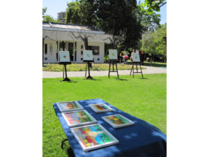 Exposición y venta de cuadros y grabados del Taller Arte Complementa en los jardines de la Corporación Cultural de Las Condes.